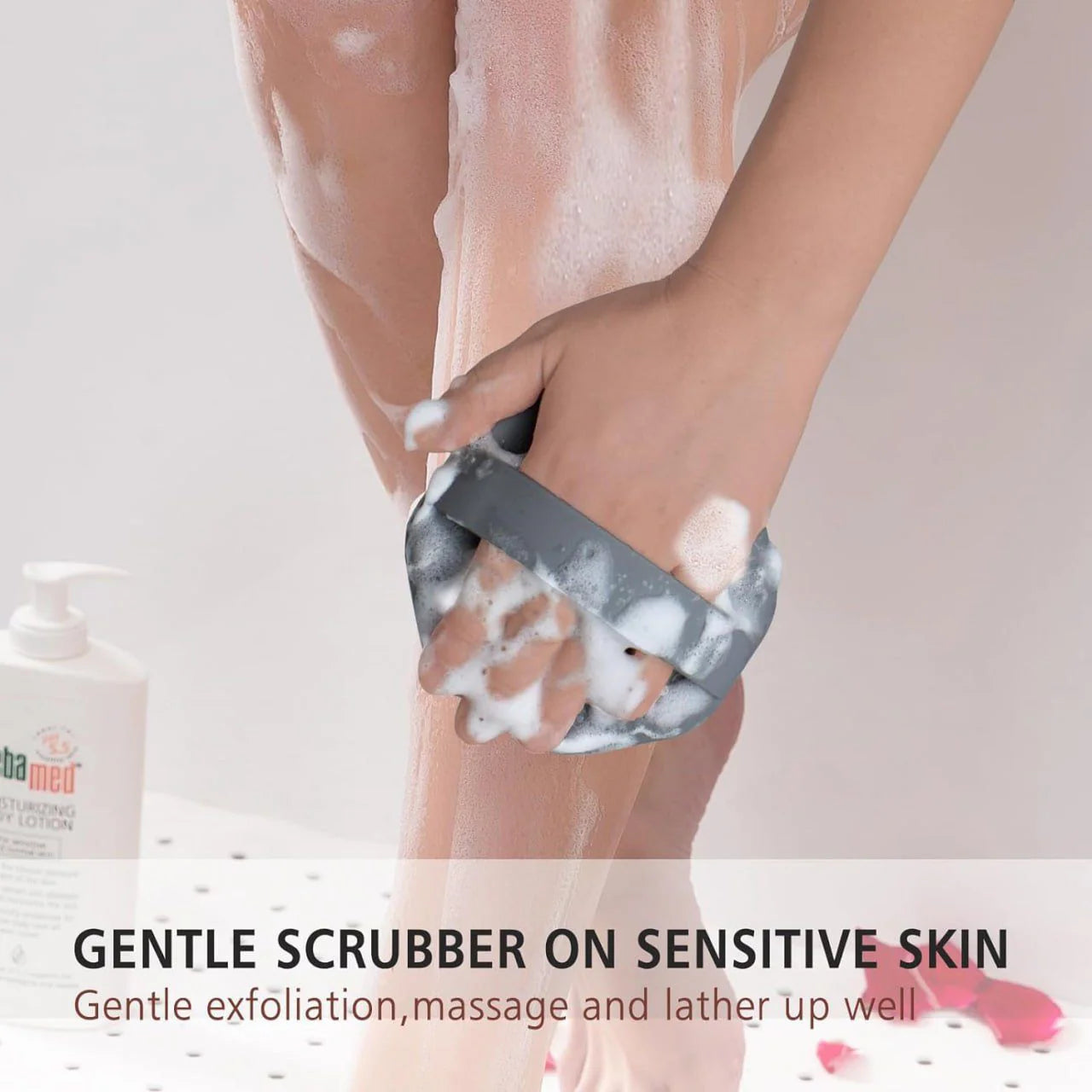 Remember the struggle of a shower body scrubber slipping in the shower? This silicone bath scrubber features an ergonomic handle with a textured grip, ensuring it stays firmly in place during scrubbing. As a result, you won't have to worry about it slipping.